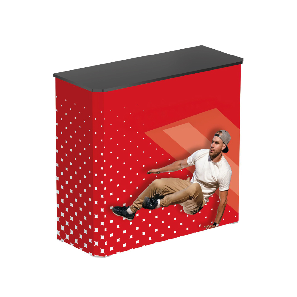 Die Messetheke FASTFRAME™ ist eine innovative, faltbare Promotionstheke, die sich durch werkzeuglose Montage und stilvolles Design auszeichnet. Dank des leichten Aluminiumrahmens und der nahtlosen Textilgrafik eignet sie sich ideal für Messen, Events und Verkaufsförderungsaktionen. Die Theke lässt sich in Sekundenschnelle auf- und abbauen, was Zeit und Aufwand spart. Mit der Möglichkeit, die Grafik einfach auszutauschen, können Sie Ihre Werbebotschaften flexibel anpassen. Die kompakte Tragetasche erleichtert den Transport und die Lagerung der Theke. Setzen Sie mit der Messetheke FASTFRAME™ auf eine professionelle und flexible Präsentation Ihrer Marke.